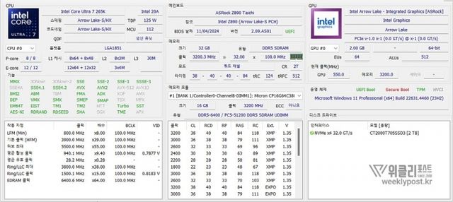 ◆ INTEL Core Ultra 7 265K + ASRock X870E Taichi 세팅 모습
