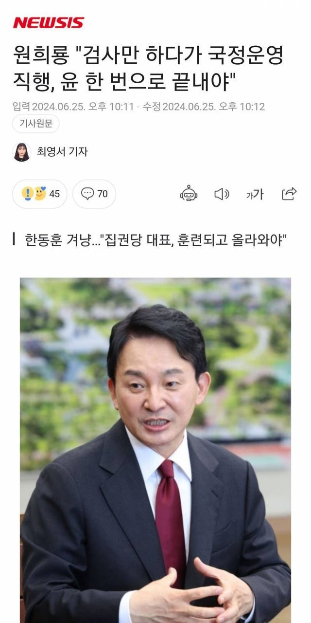 원희룡 ‘검사만 하다가 대통령 직행, 윤석열 한 번으로 끝내야’