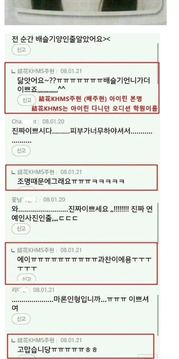 과거 다음카페 활동했던 레드벨벳 아이린..