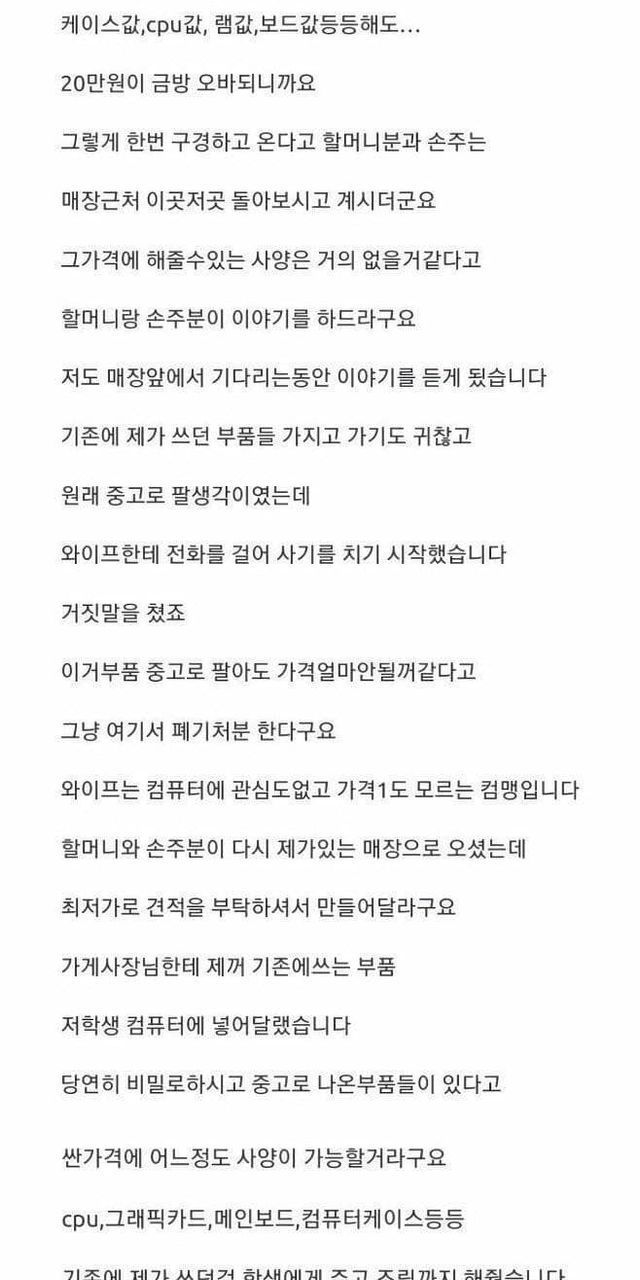컴맹이 와이프를 속이고 선행을 베푼 남성