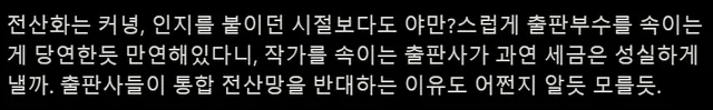 이 한 줄로 퉁치기 시작하며 출판사가 통보하는 걸 받아들이는 수밖에 없어짐