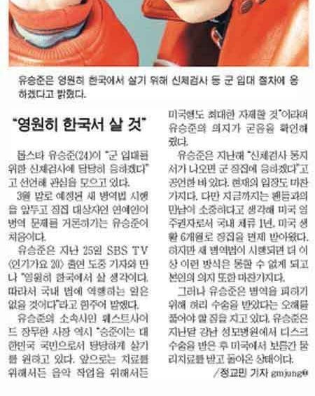 유승준이 군입대로 병무청에서 약속 받았던 혜택
