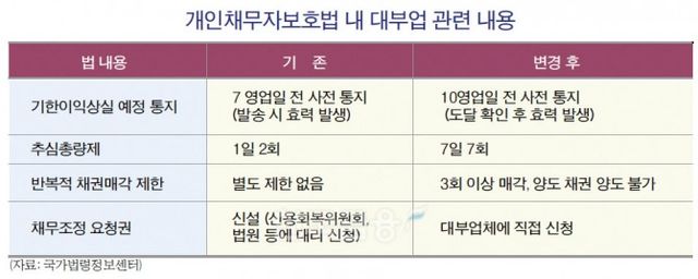 업계 관계자는 “(개인채무자보호법 시행으로) 대출 채권 관리나 매각, 추심 등의 부분에서 제약이 생기기 때문에 기존보다는 절차나 권리행사 같은 부분에서 제약이 되기 때문에 영업하는 데 어려움이 가중되는 측면이 있다”고 설명했다.