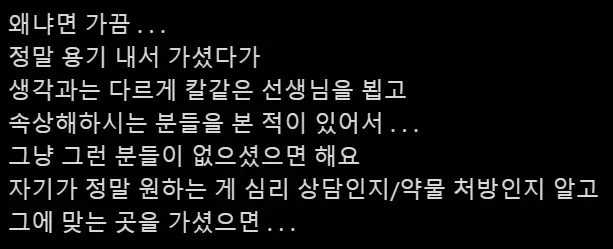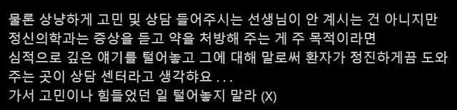 진단해서 처방 하는 곳이지 썰 듣고 위로해주는 곳이 아님.