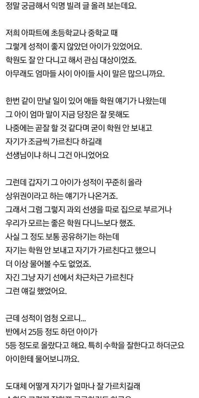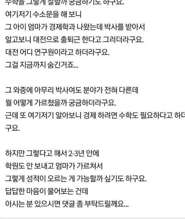 학원 안 다니는 애가 수학 잘해서 빡친 엄마