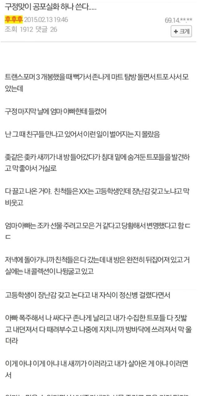 고등학생이 변신로봇 장난감을 샀다는 이유로 정신병원에 끌려감
