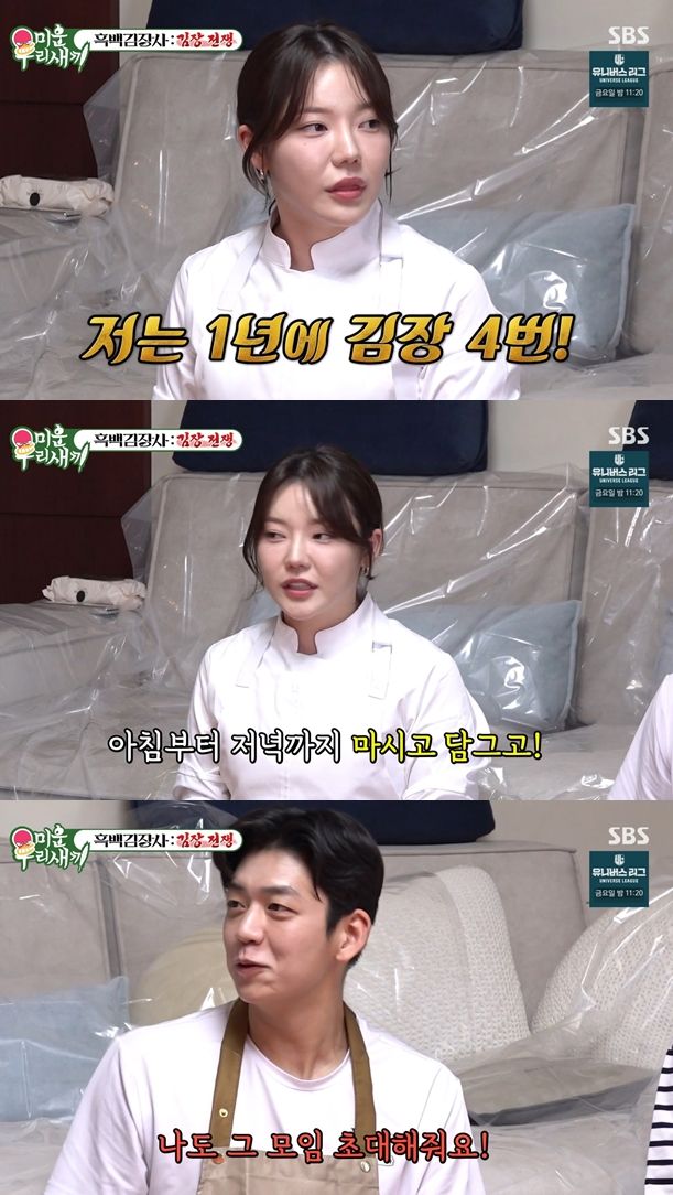 본격 김장에 들어가기 전 돌싱 3인방과 3인의 셰프는 대화를 나눴다. 이때 조서형은 "김장 1년에 4번 한다"라며, "겨울에는 김장 모임이 있다. 아침부터 저녁까지 술 마시고 담그고 한다"라고 이야기했다.