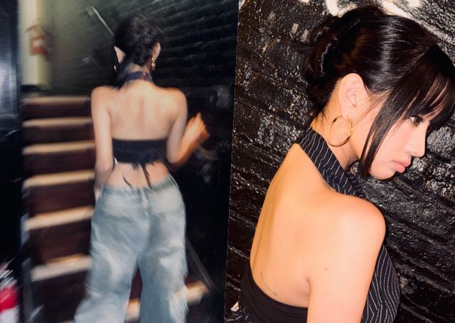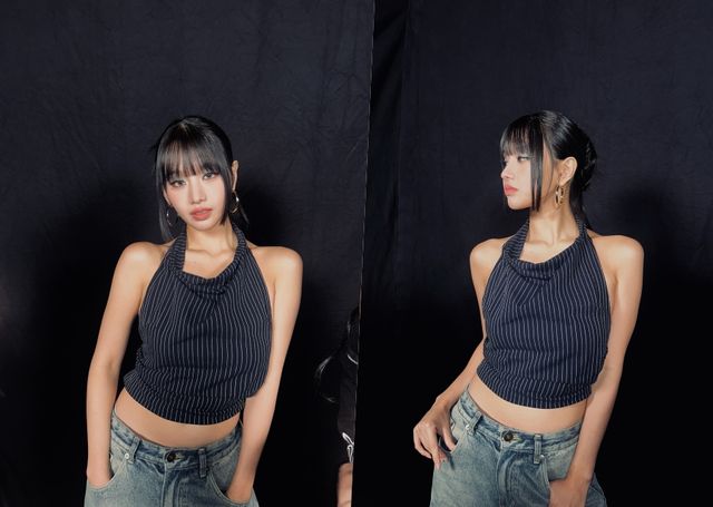 사진 속에는 블랙 스트라이프 상의를 입은 나띠의 모습이 담겨있다. 나띠는 블랙 브라탑을 매칭해 완벽 뒷태를 보여주며 놀라움을 더한다.