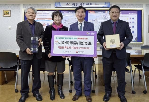 [파이낸셜경제=김영란 기자] 아산시가 지난 21일 (사)충남 강하게공부하는기업인회로부터 관내 취약계층 지원을 위한 500만 원 상당의 겨울용 목도리 100개를 후원받았다.