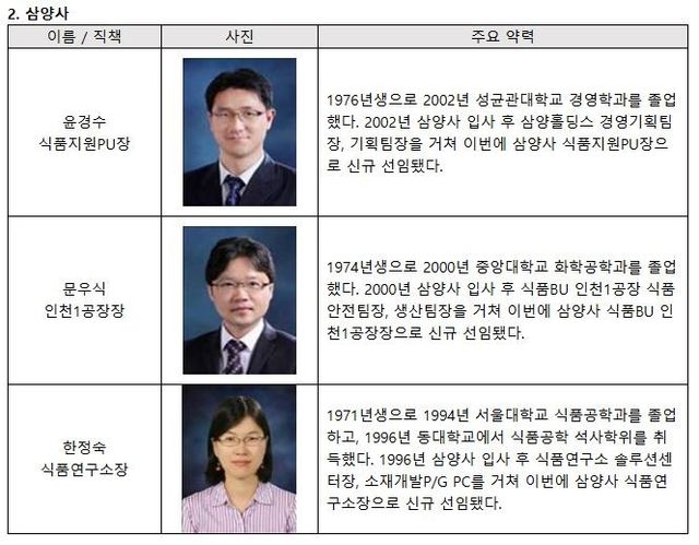 △윤경수 식품지원PU장 △문우식 인천1공장장 △한정숙 식품연구소장