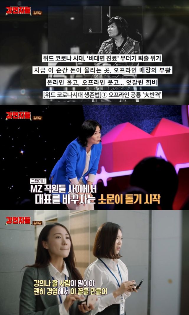 수년 전 온라인 교육 플랫폼 사업을 시작한 김미경. 직원은 7명에서 100명으로 늘 만큼 호황을 누렸다. 그러나 코로나19 사태가 진정되며 온라인 강의에서 오프라인 강의로 사람들이 이동했다.