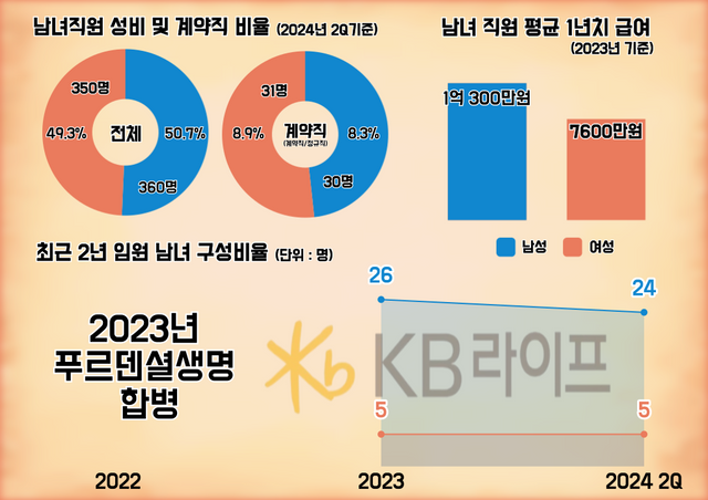 올해 반기기준 전체 인원 대비 가장 많은 여성직원을 고용한 생명보험사는 KDB생명(58.5%), 여성 임원 비율이 가장 높은 보험사는 ABL생명(22명 中 5명)이 차지했다.