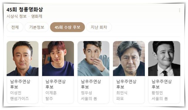 45회 청룡영화상 남우주연상 후보들. / 네이버