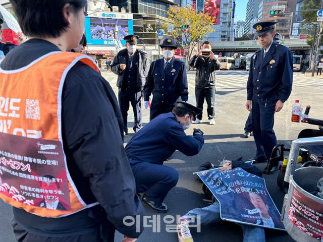 한편 박 대표를 제외한 전장연 회원들은 이날부터 일본 도쿄 시부야 등지에서 포체투지(휠체어에서 내려 바닥을 기어가는 투지 행위) 활동을 시작했다. 박경석 전장연 대표는 “(일본에 도착한 회원들이) 오늘부터 포체투지 나섰고 내일부턴 피켓도 들려고 하는데 그 과정 충돌 있을까 우려된다”면서 “그럼에도 우리가 왜 이렇게까지 하려는지 알아줬으면 좋겠다. 장애인을 하대하는 정책에 대해 강력한 촉구 나선다”고 전했다.