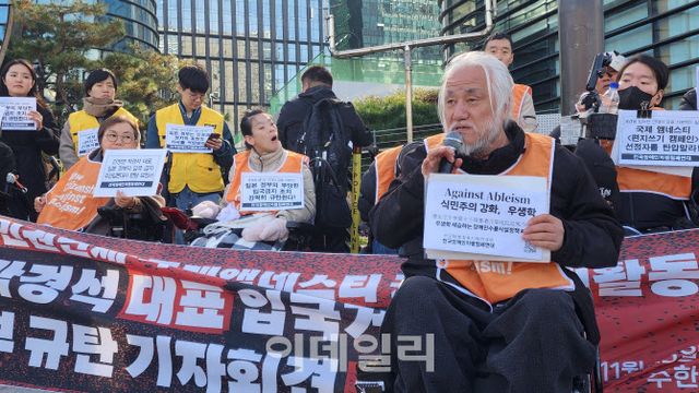 이어 이들은 박 대표의 입국 거부가 장애인 전체에 대한 거부라며 목소리를 높였다. 회견에 참석한 이원호 빈곤사회연대 상임활동가는 “전 세계 회원만 1000만 명이 넘는 국제 단체의 일본지부에서 초청해 방문했기에 입국 과정에서 발생한 착오라 생각했다”며 “이건 박 대표 한 사람에 대한 추방이 아닌, 장애인들의 권리와 인권, 평화를 추방한 것”이라고 발언했다.