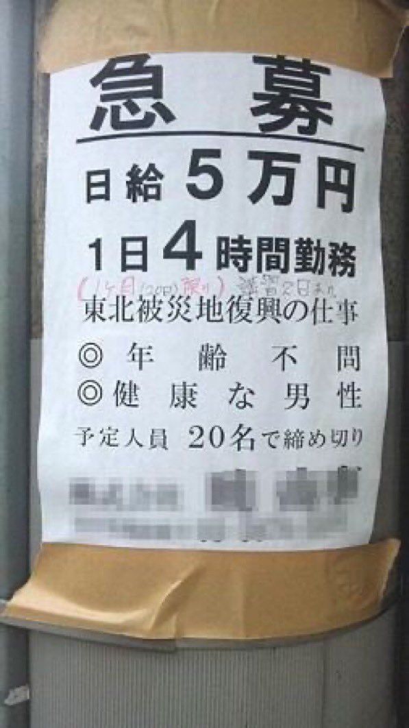 민간 유령 사설 업체나,야쿠자등을 통해 인력을 현장에 보내는 경우가 많다고 합니다.