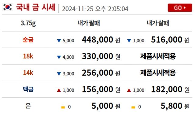 순금(24K) : 매입가 51만 6000원 / 매도가 44만 8000원