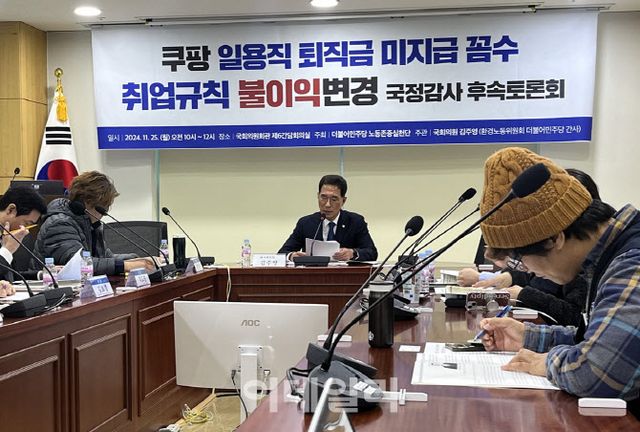 김도현 고용부 중부지방고용노동청 부천지청 근로감독관은 25일 국회에서 열린 ‘쿠팡 일용직 퇴직금 미지급 국정감사 후속토론회’에서 “(쿠팡의 퇴직금 체불 건에 대한) 수사를 올해 안에 마무리 지어 결론 낼 계획”이라고 밝혔다. 국회 환경노동위원회 소속 김주영 더불어민주당 의원이 좌장을 맡은 이날 토론회는 쿠팡이 일용직 노동자들에게 퇴직금을 지급하지 않은 데 대한 지난 국정감사 지적 이후 후속 조처로 열렸다.