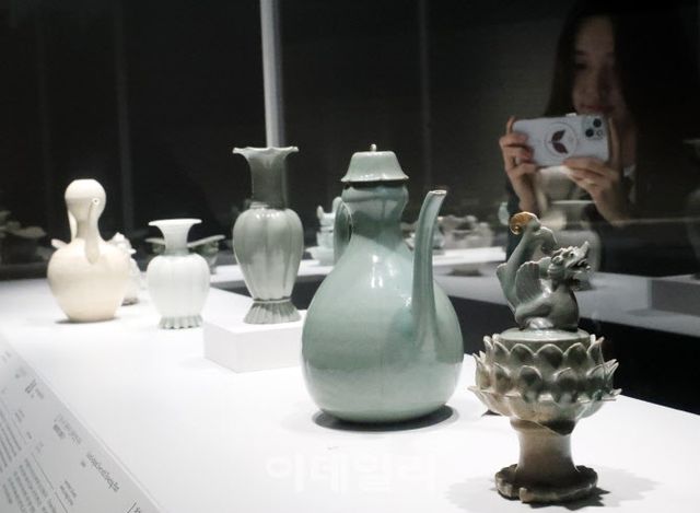 이번 전시의 초점은 중국 상형자기와는 또 다른 고려 상형청자만의 독창적인 예술성을 보여주는 데 있다. 이를 위해 고려와 같은 시기였던 중국 북송대(960~1127) 중국 자기들을 함께 비교 전시한다. 서유리 학예연구사는 “북송대의 중국 자기들은 크기도 훨씬 크고 양각을 굵고 두드러지게 표현한 반면 고려 상형청자는 가느다란 칼을 이용해 양각을 표현하는 등 매우 디테일하고 섬세한 표현이 눈에 띈다”며 “중국의 공예 기술이 우리만의 푸른 색과 만나 훨씬 더 생동감 넘치는 형상을 구현했다”고 설명했다.