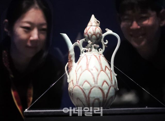 리움미술관이 소장하고 있는 국보 ‘청자 양각·동화 연꽃무늬 조롱박모양 주자’도 만날 수 있다. 1257년 사망한 무신정권의 권력자 최항(1209~1257)의 무덤에서 출토된 것으로 전해지는 13세기 청자 대표작이다. 손잡이 위에 작은 개구리 한 마리가 앉아 있어 고려 사람들의 세밀한 공예 솜씨를 확인할 수 있다.