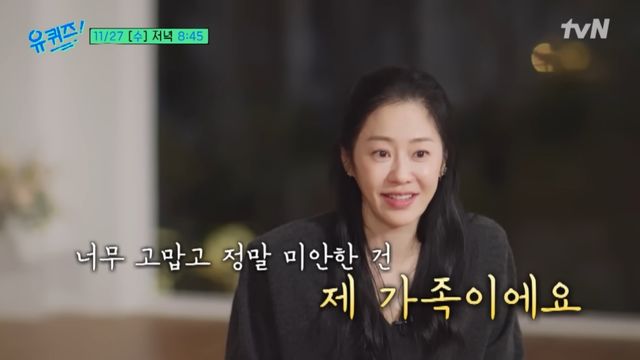 고현정은 가족에 대한 이야기를 전하며 눈물을 보이기도 했다. 그는 "전형적인 K-장녀였던 것 같다"라며 "너무 고맙고, 정말 미안한 건 제 가족이에요. 너무 박했떤 순간이 많아요"라고 회상하며 말을 살짝 잇지 못했다.
