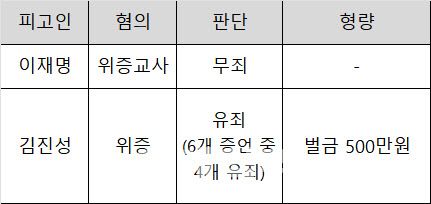 이번 무죄 판단을 두고 법조계에서는 굉장히 이례적이라는 평가가 나온다. 통상 위증교사죄는 위증죄보다 엄하게 처벌되는 경우가 많지만 이번 선고 결과는 정반대 결론이 나오면서다.