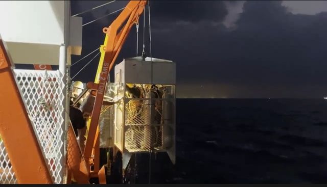 이날 오전 민간구난업체 바지선이 애월항으로 대피하면서 심해잠수사 투입이 중단됐다. 심해잠수사를 투입하려면 잠수사가 바닷속으로 내려가고 다시 수면 위로 올라올 수 있도록 한 장비와 고압산소치료장비를 갖춘 바지선을 닻으로 고정해야만 한다.