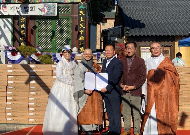 [와이뉴스] 평택시 포승읍에 있는 연화사가 창립 18주년을 맞이해 지난 24일 어려운 이웃을 위해 백미 10㎏ 200포(690만 원 상당)를 평택시에 기부했다.