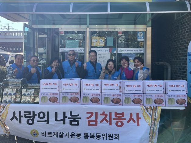 이석주 통복동 바르게살기위원장은 “직접 담근 김장 김치를 추운 겨울 어렵게 지내시는 이웃에게 전달하고 싶어 이번 나눔 행사를 진행했으며, 앞으로도 지역사회에 더욱 많은 관심을 갖고 다양한 활동을 추진하겠다”고 말했다.