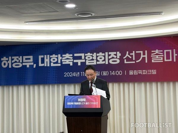 허정무 전 축구 국가대표팀 감독이자, 대전하나시티즌 이사장은 25일 올림픽파크텔 4층 아테네홀에서 제55대 대한축구협회장 선거 출마를 공식 선언했다.