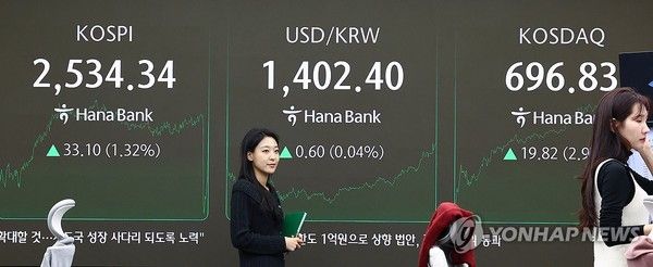 이날 코스피 종가는 전 거래일 대비 33.10포인트(1.32%) 오른 2,534.34로 집계됐다.