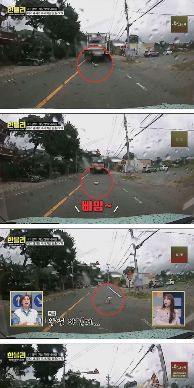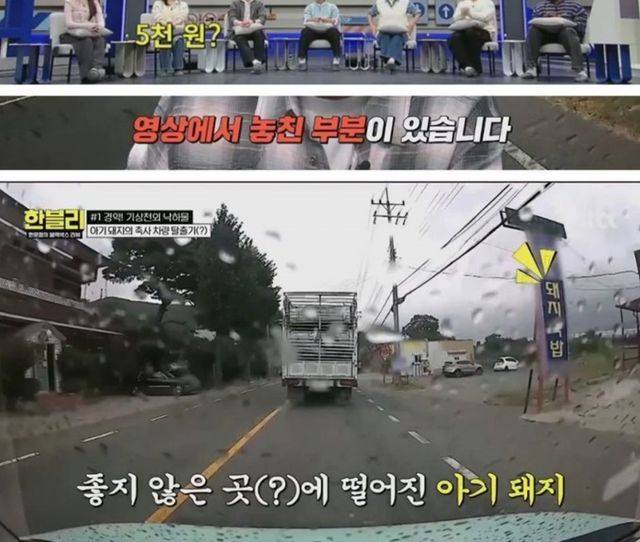 돼지국밥집 앞 도로에 떨어진 아기돼지