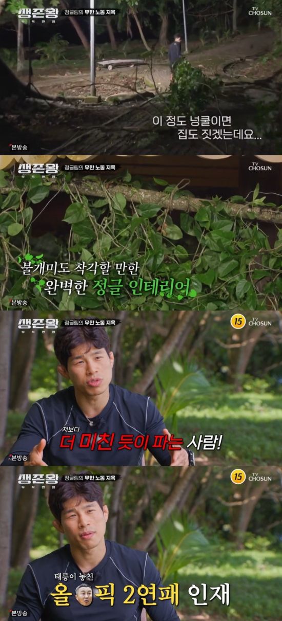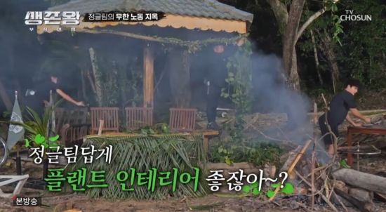 25일 방송된 TV조선 '생존왕 : 부족전쟁'(이하 '생존왕')에서는 정글팀(김병만, 정지현, 김동준)과 용병 김민지가 생존지를 인테리어하는 장면이 전파를 탔다.