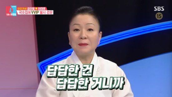 김미령의 모습을 본 서장훈은 "지난 주에 남편에게 고맙다고 눈물을 흘리시더니 그 분은 어디 갔냐"고 했고, 이에 김미령은 "고마운건 고맙지만, 답답한 건 답답하니까"라고 말해 웃음을 줬다.