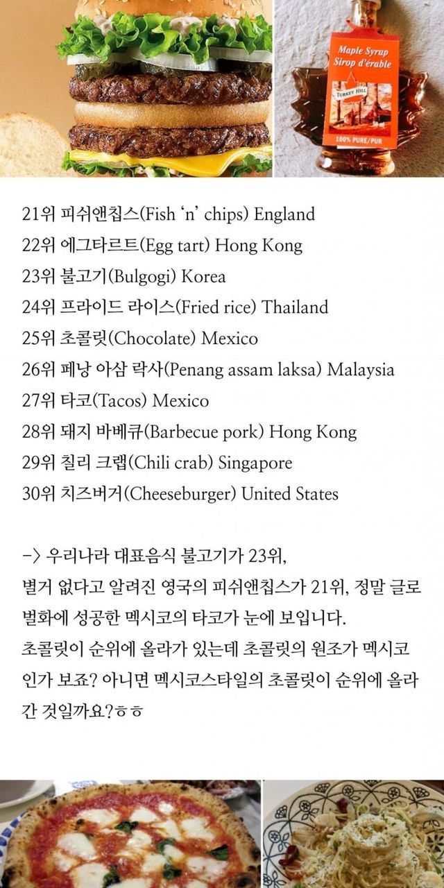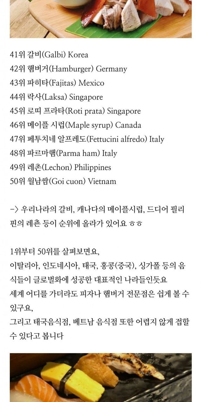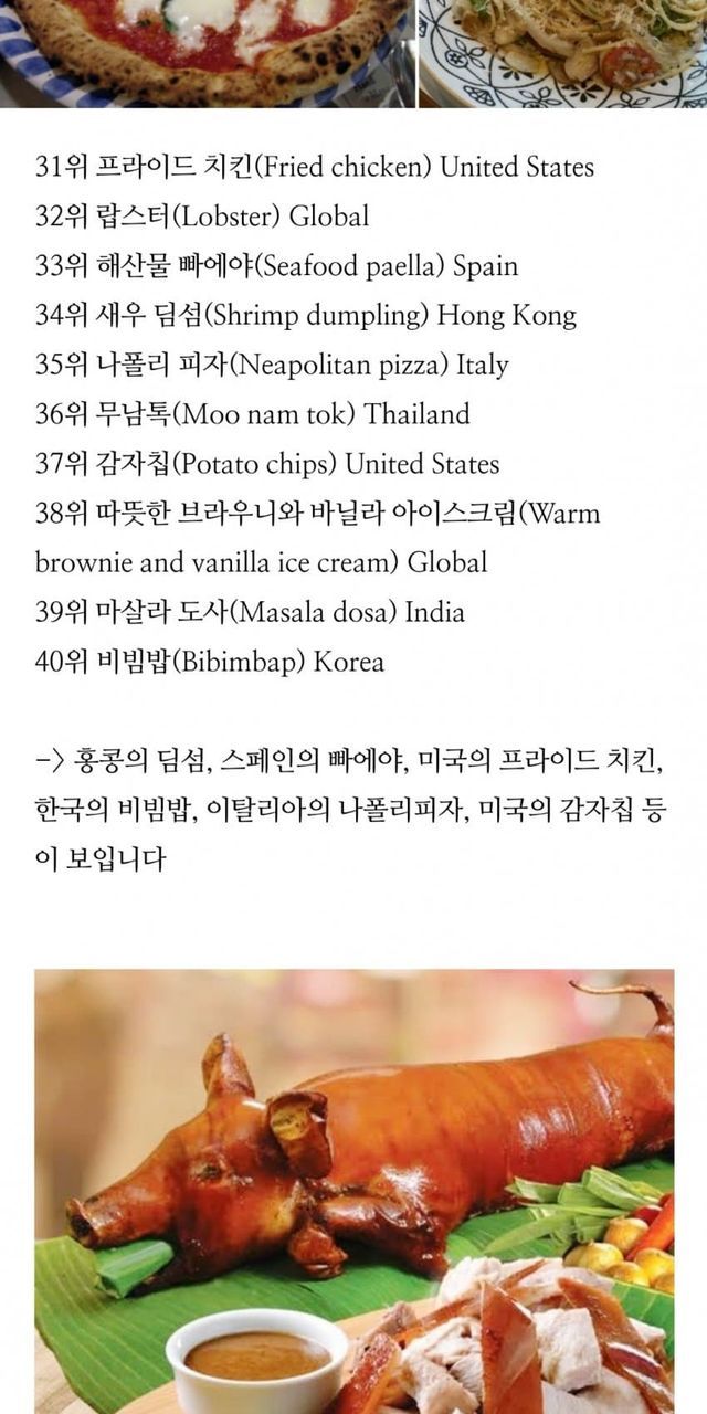CNN 조사 - 세계에서 가장 맛있는 음식 순위
