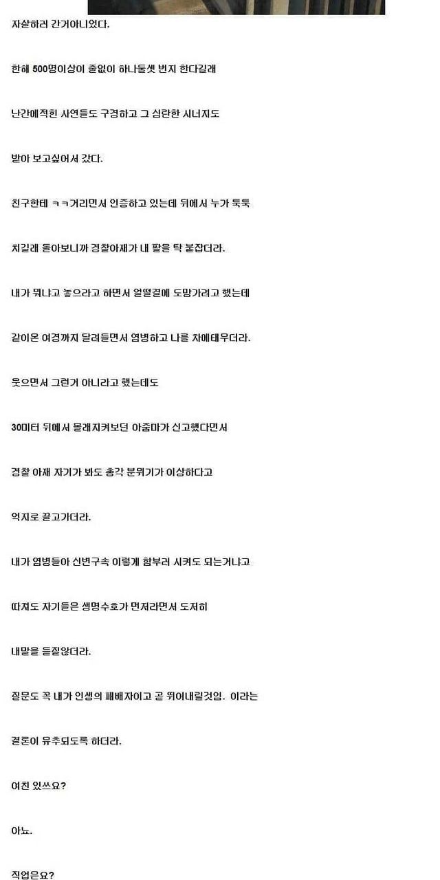 마포대교 갔다가 지구대 끌려간 주갤럼