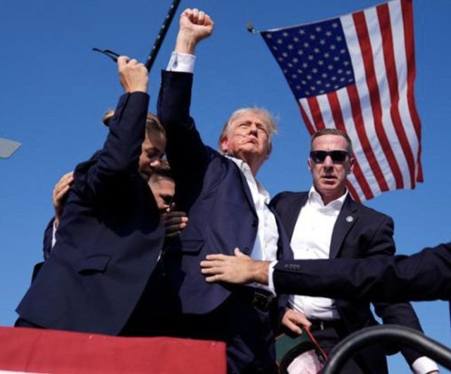 트럼프 총살 당할 뻔 했지만 뒤에 성조기 휘날리는ㄷㄷ
