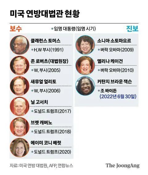 지금도 미국 연방대법원 멤버 구성이 6:3 구도인데
