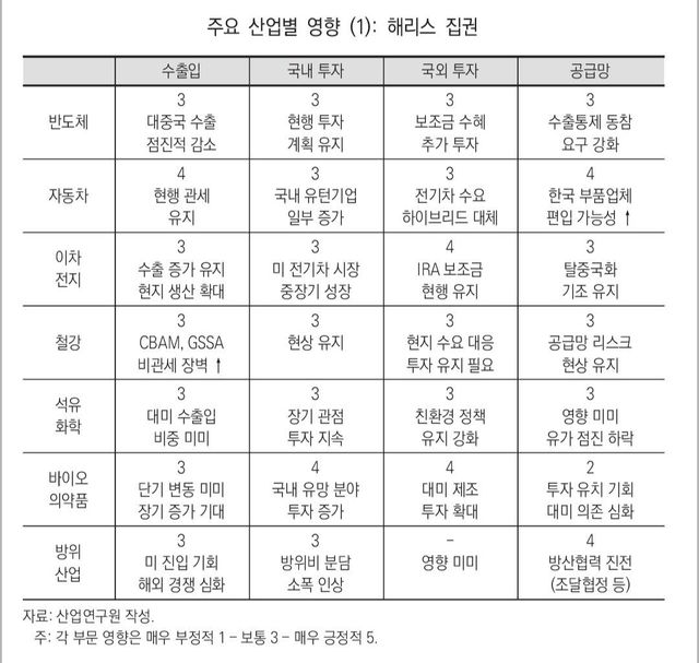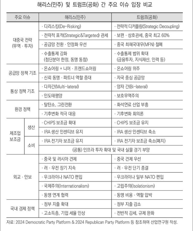 출처 - 산업연구원 논문, 미국 대선 향방에 따른 한국 산업 영향과 대응 방안(2024. 11. 5.)
