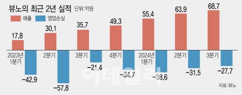 25일 금융감독원 전자공시시스템에 따르면 뷰노의 3분기 매출은 69억원으로 전년 동기 대비 92.4% 증가했지만 영업손실이 28억원으로 29.4% 늘었다. 손실 폭이 오히려 늘어난 셈이다. 시장 추정치(컨센서스) 25억원보다 2억원 높은 영업손실을 기록하고, 매출 역시 추정치(82억원)보다 17%가량 낮게 나타났다.