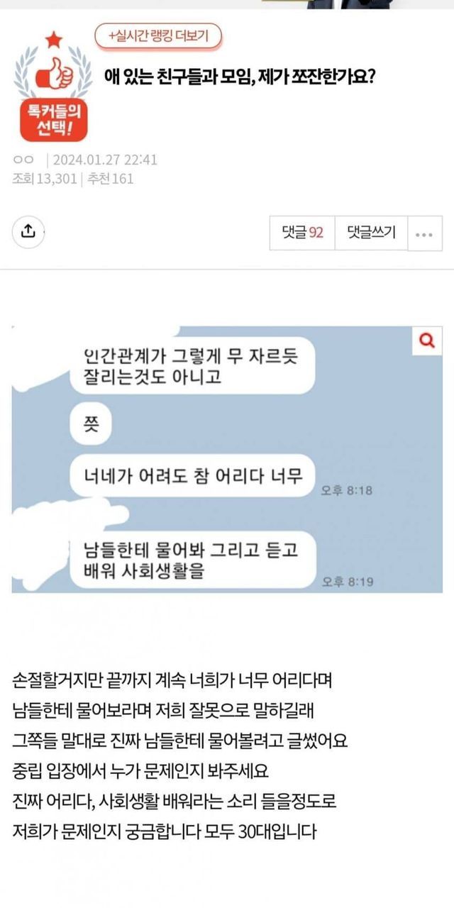 애가 무슨 무적방패도아니고 머릿수가많으면 미안해야되는 모임같은데 어디까지 배려를 바라는건지
