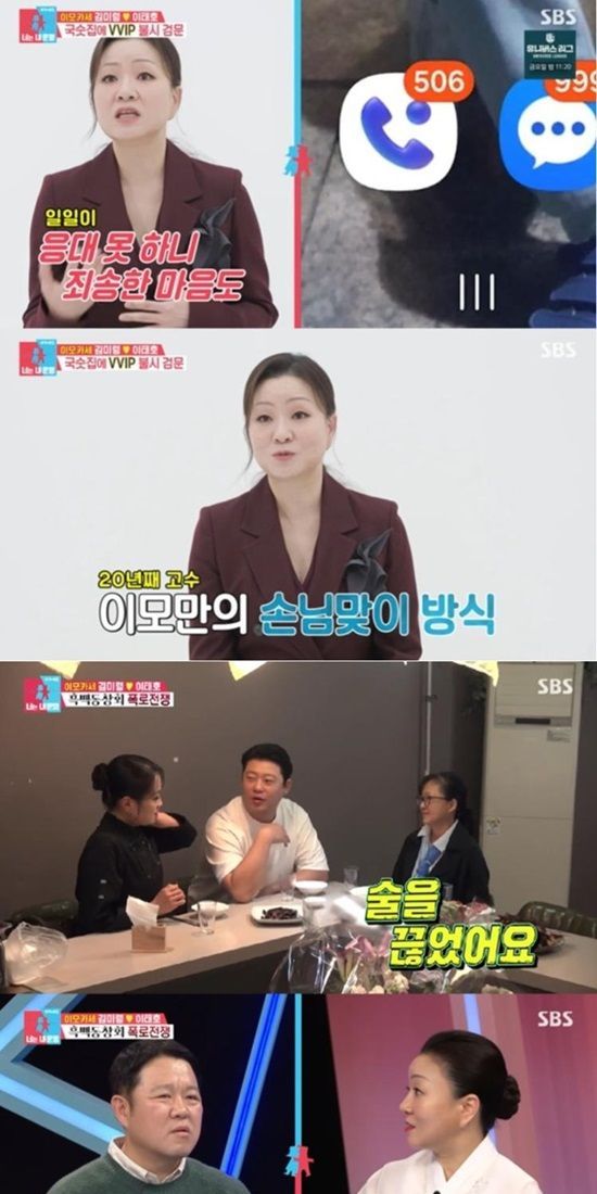 이날 방송에는 ‘이모카세 1호’ 김미령 셰프 부부의 일상과 함께 ‘흑백요리사’ 출연진들의 동창회가 열려 눈길을 끌었다. 여전히 문전성시인 국숫집은 김미령 셰프가 기존대로 직접 전화 예약을 받아 모두를 놀라게 했다. 운영 방식이 대해 김미령 셰프는 "요즘은 전화가 너무 많이 와서 앱 활용도 생각해봤는데 일일이 응대를 못해 죄송한 마음이 들더라. 결국 옛날 방식대로 직접 통화해 (예약을) 받기로 했다"며 "한국 사회에는 아직 따뜻한 음식과 정이 있다. 제가 직접 전화로 응대하는 게 예의일 것 같다"고 설명했다.