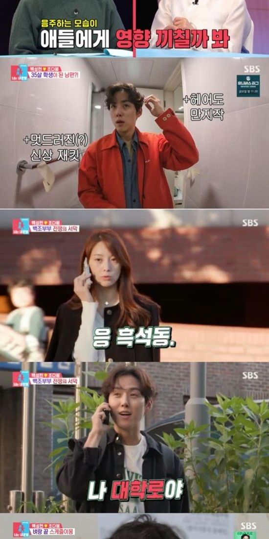 이밖에 이날 방송에선 늦깍이 대학생이 된 배우 백성현의 이야기도 공개됐다. 백성현은 “2007년에 (중악대학교) 대학에 입학했지만 작품 활동 때문에 자퇴를 했고 다시 재입학하게 됐다. 딱 한 학기 남았다”고 설명했다. 백성현은 오랜만의 등교에 설레임을 드러냈지만, 학교 후배에게 ‘수업 후 회식’을 물어보며 ‘아재 대학생’의 면모를 보였다.