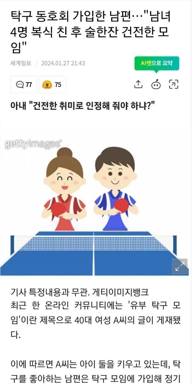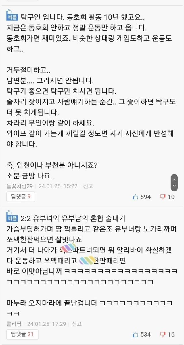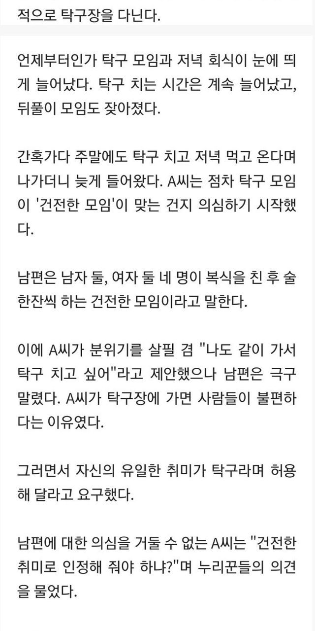탁구 동호회 가입한 남편 때문에 불안한 아내