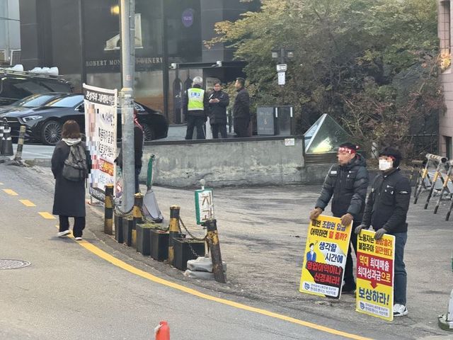 트랜시스 노조원들은 지난 18일, 서울 한남동 정의선 현대차그룹 회장 자택 인근서 이른 오전부터 대형 현수막과 피켓을 동원한 민폐 시위를 강행하고 있는 것으로 확인됐다. 현대트랜시스 노조 측의 장외 집회 및 시위는 지난 10월26일부터 시작돼 이번이 11번째로, 노조 측은 지금까지 주 2회 진행하던 주택가 민폐 시위를 지난주부터 주 3회로 늘렸다.