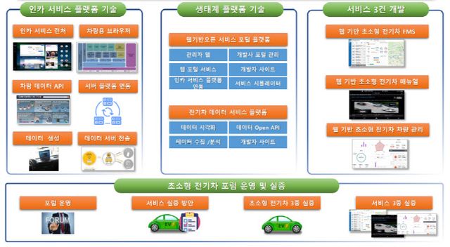 세부적으로 1차년도에 플랫폼 설계 중심의 △인카 서비스 플랫폼 설계 및 개발 △웹 기반 서비스 포털 플랫폼 설계 △초소형 전기차용 차량관제서비스(FMS) 기획 및 설계를 진행했다.