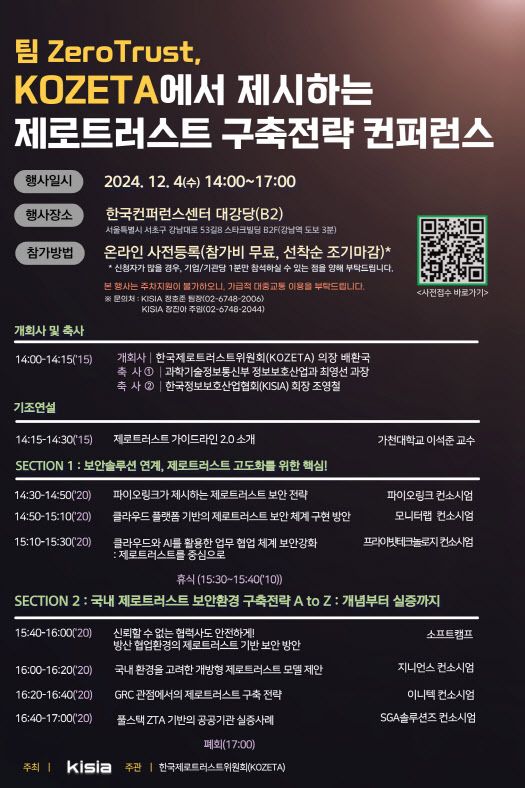 본 행사는 수요 기관 뿐 아니라 제로트러스트에 관심 있는 누구나 선착순 신청으로 참석 가능하다. 행사 관련 정보는 관련 홈페이지에서 확인할 수 있다.