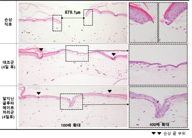 공동 연구를 주도한 곽인숙 한강성심병원 마취통증의학과 교수는 “알지닌 글루타메이트가 함유된 제형을 바른 흉터 부위가 부드러워져 피부 유연성이 증가했다”고 설명했다. 연구에 참여한 김혜원 강남성심병원 피부과 교수는 “알지닌 글루타메이트 제형이 피부 장벽 기능을 회복시켜 가려움증 개선에 도움을 줬다”고 분석했다.