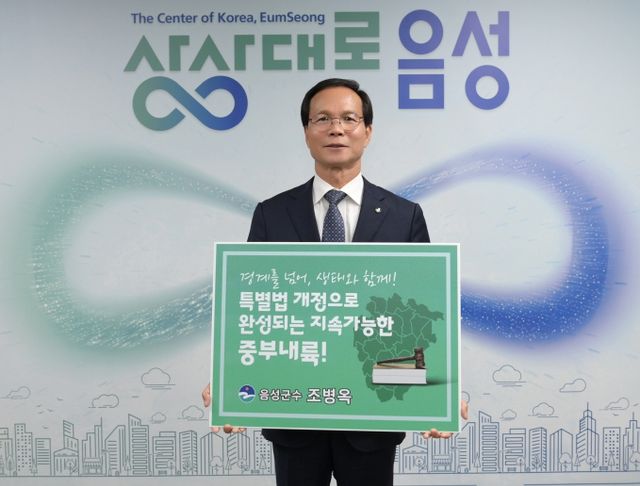 [파이낸셜경제=김영란 기자] 조병옥 음성군수는 26일 중부내륙연계발전지역 지원에 관한 특별법 개정 분위기 조성 릴레이 챌린지에 동참했다.