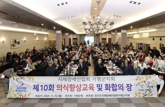 [와이뉴스] 가평군은 (사)한국지체장애인협회 가평군지회 주관으로 25일 벨리웨딩하우스에서 ‘2024년 장애인 의식향상교육 및 화합의 장’ 행사를 개최했다고 밝혔다.